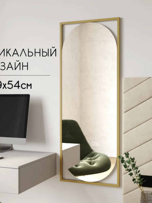 Дизайнерское настенное напольное зеркало Glass Memory Lustrous в металлической раме золотого цвета в Балахне